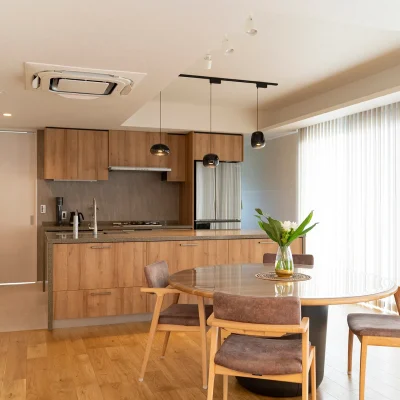 キッチンを中心とした遊び心のあるマンションリノベーション